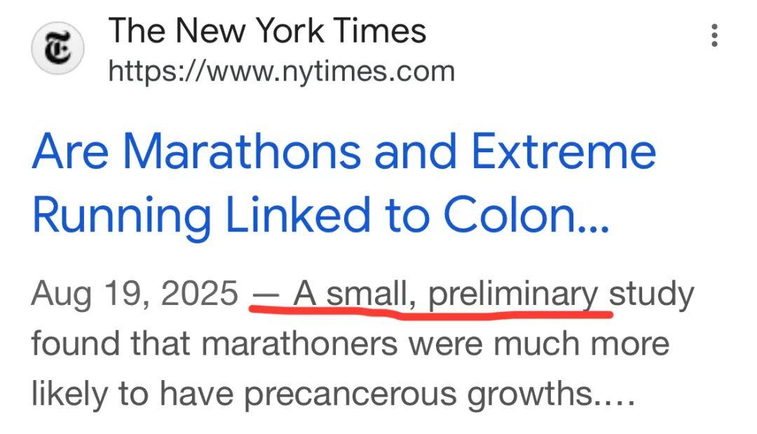 首先,什么是“过度”运动其实需要给个定义,以免鸡同鸭讲。比如这个100名跑者需要跑过5次马拉松或两次超马,我跑过5次马拉松也符合要求,虽然我是慢慢跑下来的没觉得过度运动了。