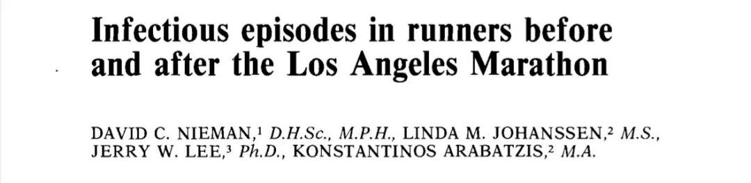 有个35年前的研究拿出来被当作“过度运动有害”的证据。这篇论文发现1828名参加洛杉矶马拉松的跑者,在跑完一周内有12.9%的人得了上呼吸道感染;但134名没去跑马拉松的跑者中,只有2%的人感染了。所以结论是惊呼“马拉松降低免疫力,造成呼吸道感染提高6倍”。